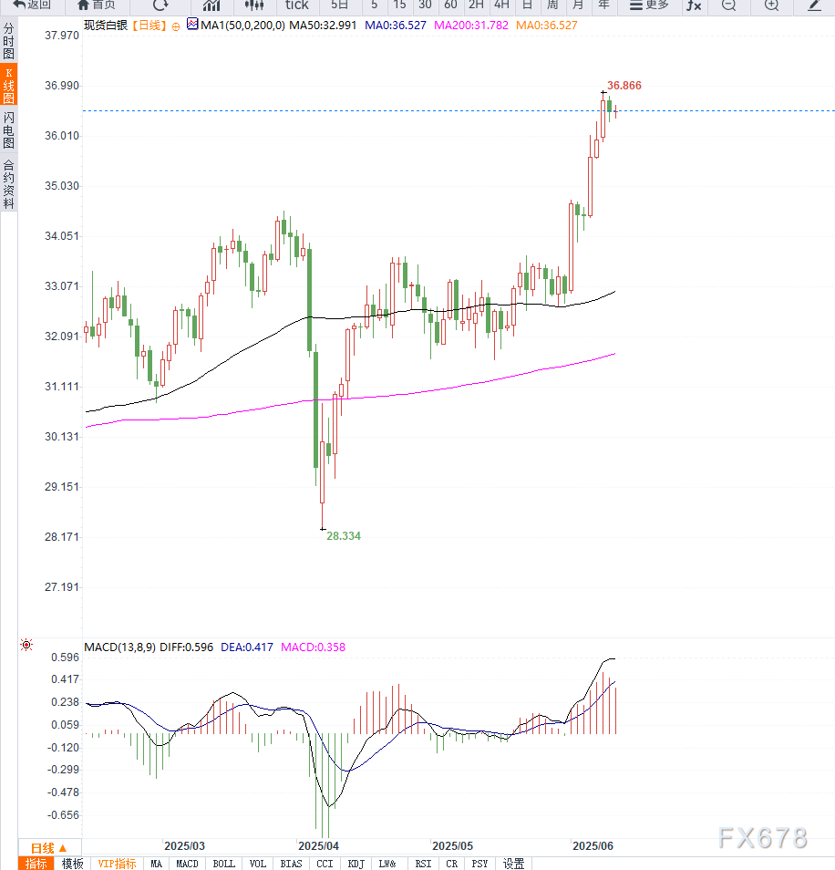 汇通财经APP讯——银价在关键通胀数据出炉前陷入观望整理。周三欧洲时段,银价在36.50美元上下小幅波动。市场情绪谨慎,等待即将公布的美国5月CPI数据,预计该数据将决定美联储短期政策方向,并直接影响包括白银在内的大宗商品价格。