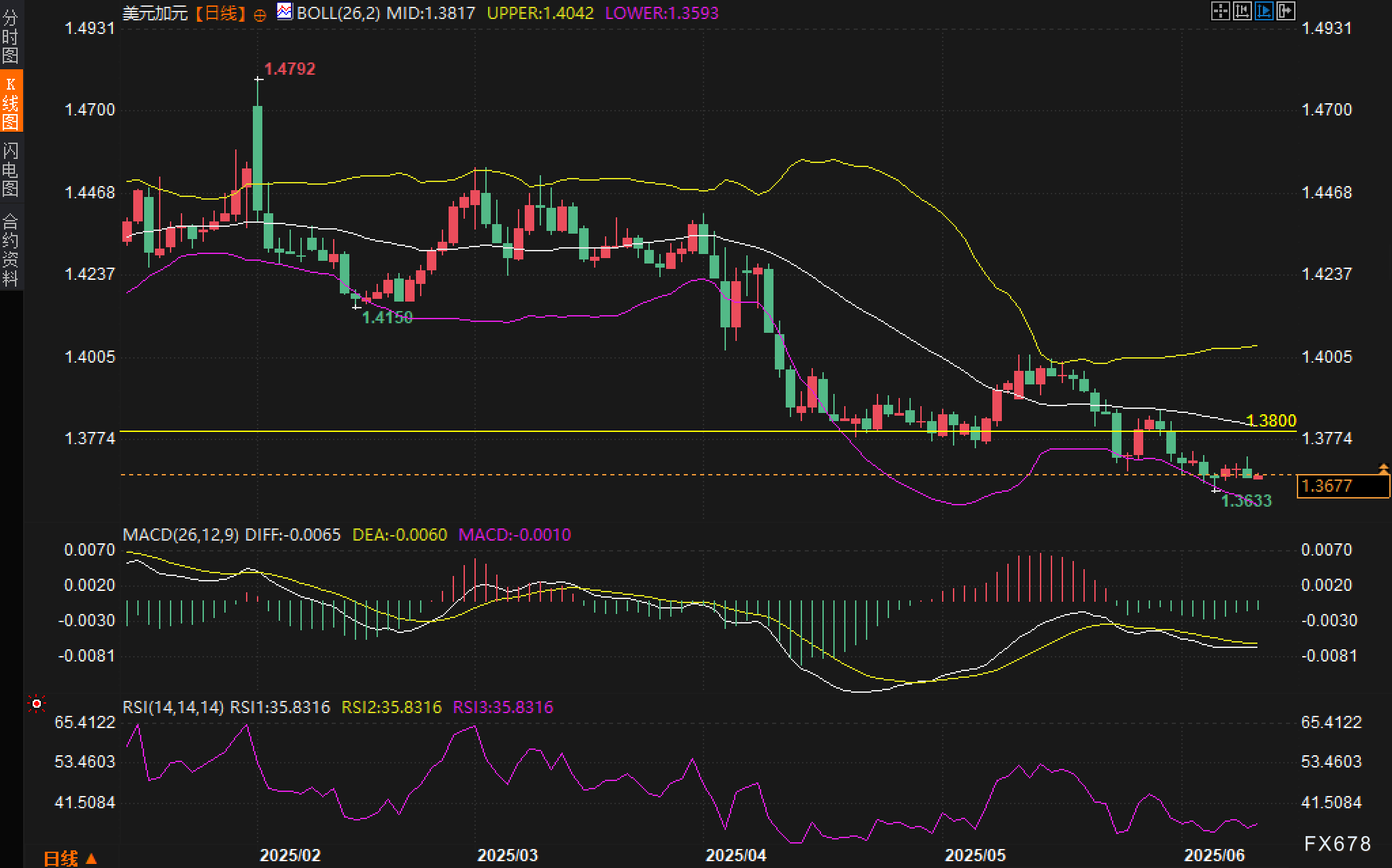 若原油价格能进一步上行,加元或获得进一步支撑,从而推动USD/CAD继续走低,测试1.3590甚至更低水平。但若油价冲高回落或美元继续受益于全球资金回流,美指走强则可能推升汇价重回1.3800区域。