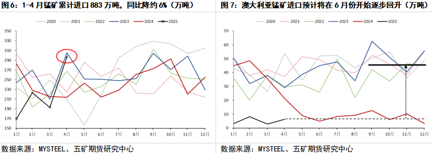 锰矿方面,自2024年4月份以来的紧缺叙事已经结束。South32旗下位于澳大利亚的Groote Eylandt采矿公司(GEMCO)锰矿发运已恢复,出口销售额预计在2025年6月季度逐步提升,并在2026财年(2025年7月至2026年6月)恢复至正常水平。澳大利亚锰矿的发运恢复将为下半年锰矿供应提供显著增量。