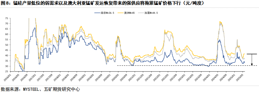 需求弱化所带来的锰硅产量低位(弱需求)以及澳大利亚锰矿发运逐步恢复正常化所带来的锰矿供应显著增量(强供应)预计将带动锰矿价格重心下移。