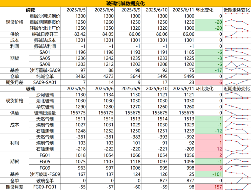 1.短期纯碱供需面仍处于供增需平的状态,后续检修的装置减少,叠加部分装置新投产,短期供给回升较为明显,需求端变动不大,但浮法玻璃和光伏玻璃自身基本面偏弱,减产概率上升,对上游补库预期弱,整体纯碱供需面偏弱。