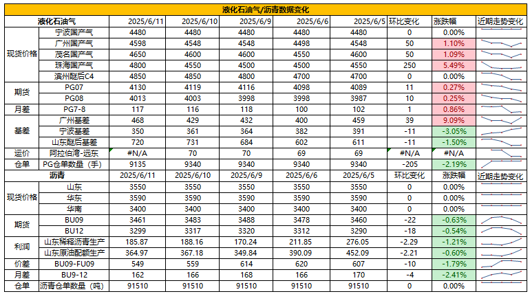 3. 基差走弱,山东民用气4620元/吨,华东民用气4492元/吨,华南民用气4630元/吨。