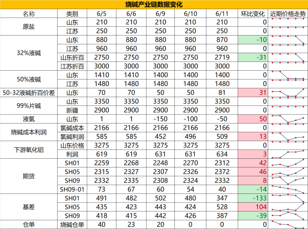 1.短期山东检修延续,但当前烧碱下跌的主逻辑仍在非铝下游需求淡季+压缩上游高利润,由于烧碱成本塌陷,但价格未明显下滑,随着当前现货高价非铝下游接货放缓,需求承压预期下现货存在下跌预期,但下调幅度也有限。