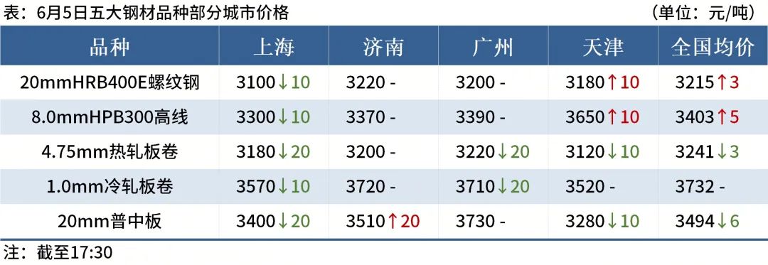 ◎6月5日,唐山迁安普方坯资源出厂含税下调20元/吨,报2880元/吨。