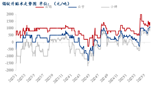 今日套盘商对沪锡2507合约套盘云锡升水1200元/吨左右,普通云字升水900-1000元/吨左右;小牌升水800元/吨左右,进口锡升水100元/吨左右。