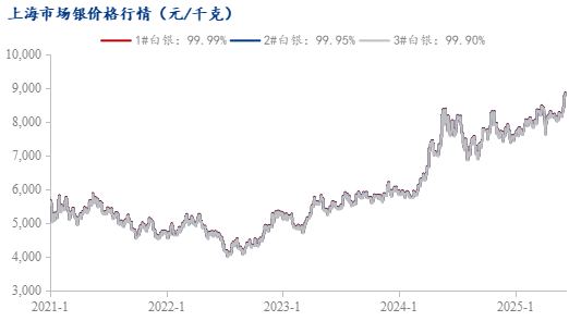 2025年6月12日,Mysteel上海地区1#白银现货均价报8810元/千克,跌55元/千克;沪银主力合约跌0.88%,报8819元/千克;COMEX银跌0.84%,报36.42美元/盎司;伦敦银现货跌0.77%,报36.28美元/盎司;美国10年期国债收益率报4.389%,美元指数报98.11。