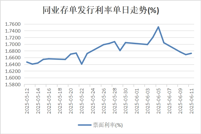 21世纪经济报道记者据数据梳理发现,同业存单降价拐点已至。回顾近期,银行同业存单票面利率曾在近一个月内持续攀升,于6月5日触及1.7512%的阶段性峰值。这一居高不下的势头,在6月5日央行宣布万亿流动性投放后“扭头”转变,现已回落至6月11日1.6725%的相对低位,下行幅度明显。