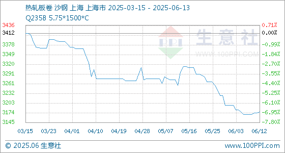 6月13日生意社热轧板卷基准价为3176.67元/吨