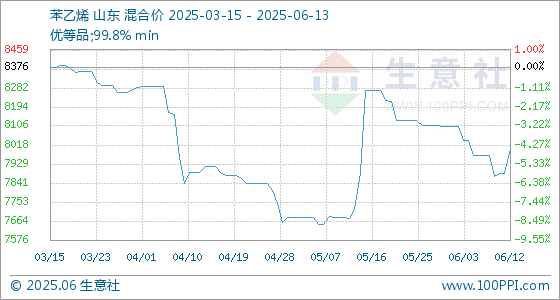 6月13日生意社苯乙烯基准价为8002.00元/吨