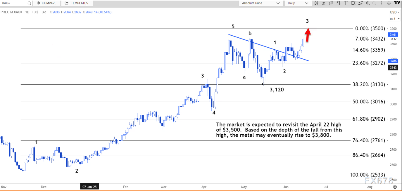 根据从这一高点下跌的深度,金价最终可能升至 3800 美元。