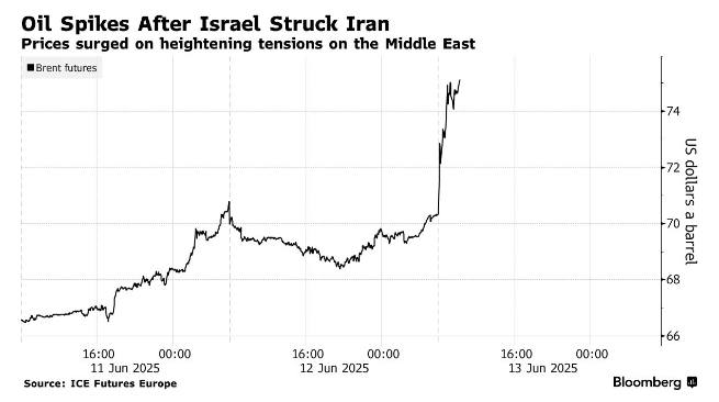 随着以色列军方对伊朗境内目标发动大规模军事打击,引发市场对占全球原油产量三分之一的中东地区爆发新冲突的深切忧虑,国际油价持续上涨。