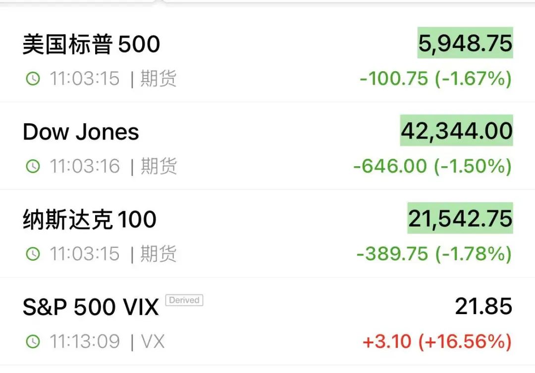暂未开盘的欧美股市方面,主要股指期货亦大幅跳水,美股恐慌指数飙涨超16%。