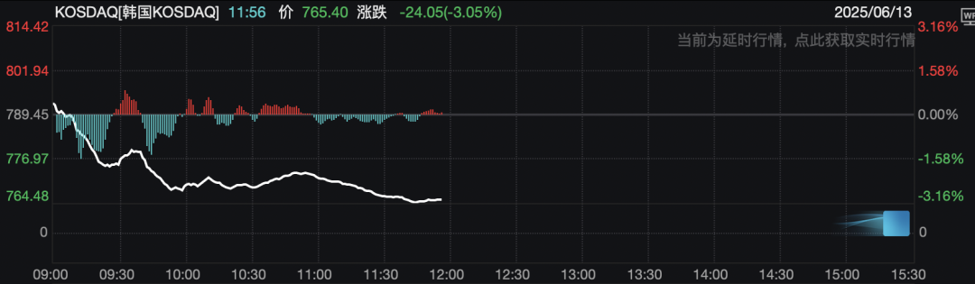 亚太股市方面,日、韩股市开盘后大幅走低,日经225指数、韩国综合指数均跌超1%,韩国KOSDAQ指数跌超3%。