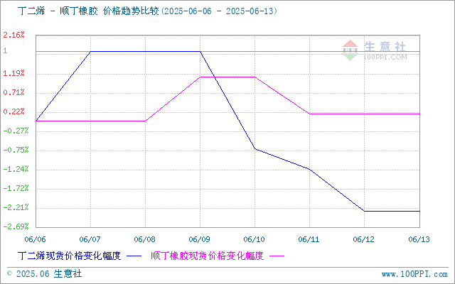 生意社丁二烯-顺丁橡胶(下游产品)价格走势比较图: