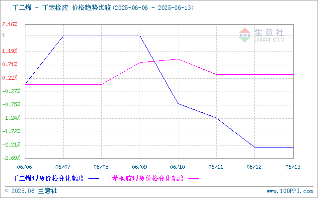 生意社丁二烯-丁苯橡胶(下游产品)价格走势比较图: