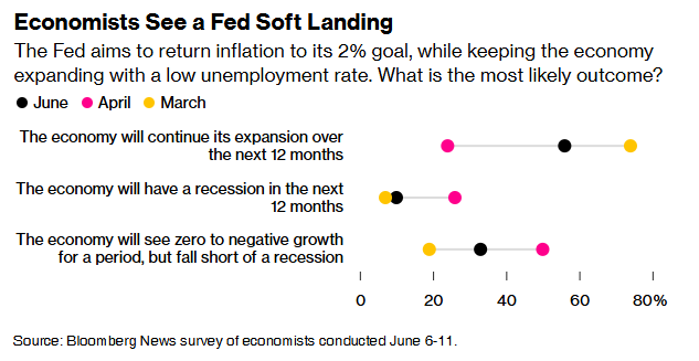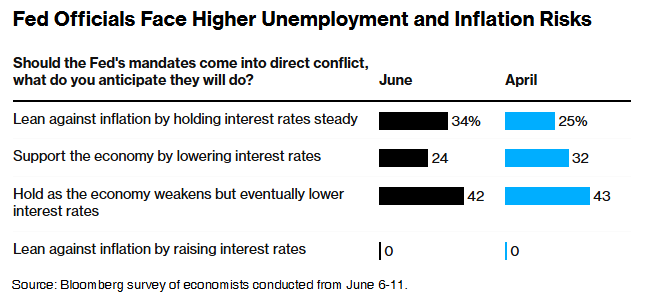 对于经济前景,受访经济学家们的观点略显乐观,预测未来12个月内出现经济衰退的受访者比例从4月下旬的26%下降至10%。超过70%的经济学家表示,若美联储的两个目标——价格稳定和充分就业——发生冲突,政策制定者将在一段时间内维持利率不变。但这些人中的大多数认为,政策制定者最终会选择降息。