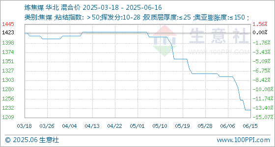 6月16日生意社炼焦煤基准价为1228.75元/吨