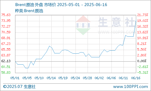 6月13日,国际原油期货大幅跳升。美国WTI原油期货7月合约结算价报72.98美元/桶,涨幅4.94美元或7.3%。布伦特原油期货8月合约结算价报74.23美元/桶,涨幅4.87美元或7.0%。主因伊朗和以色列冲突升级,地区紧张局势升温,原油供应中断担忧加剧。