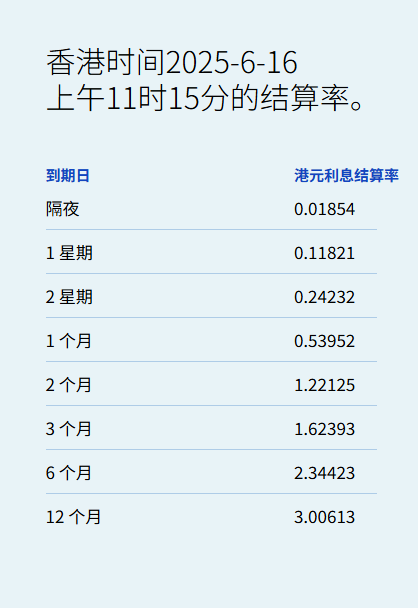 港元拆息普遍向下一个月期创三年新低报0.53952%