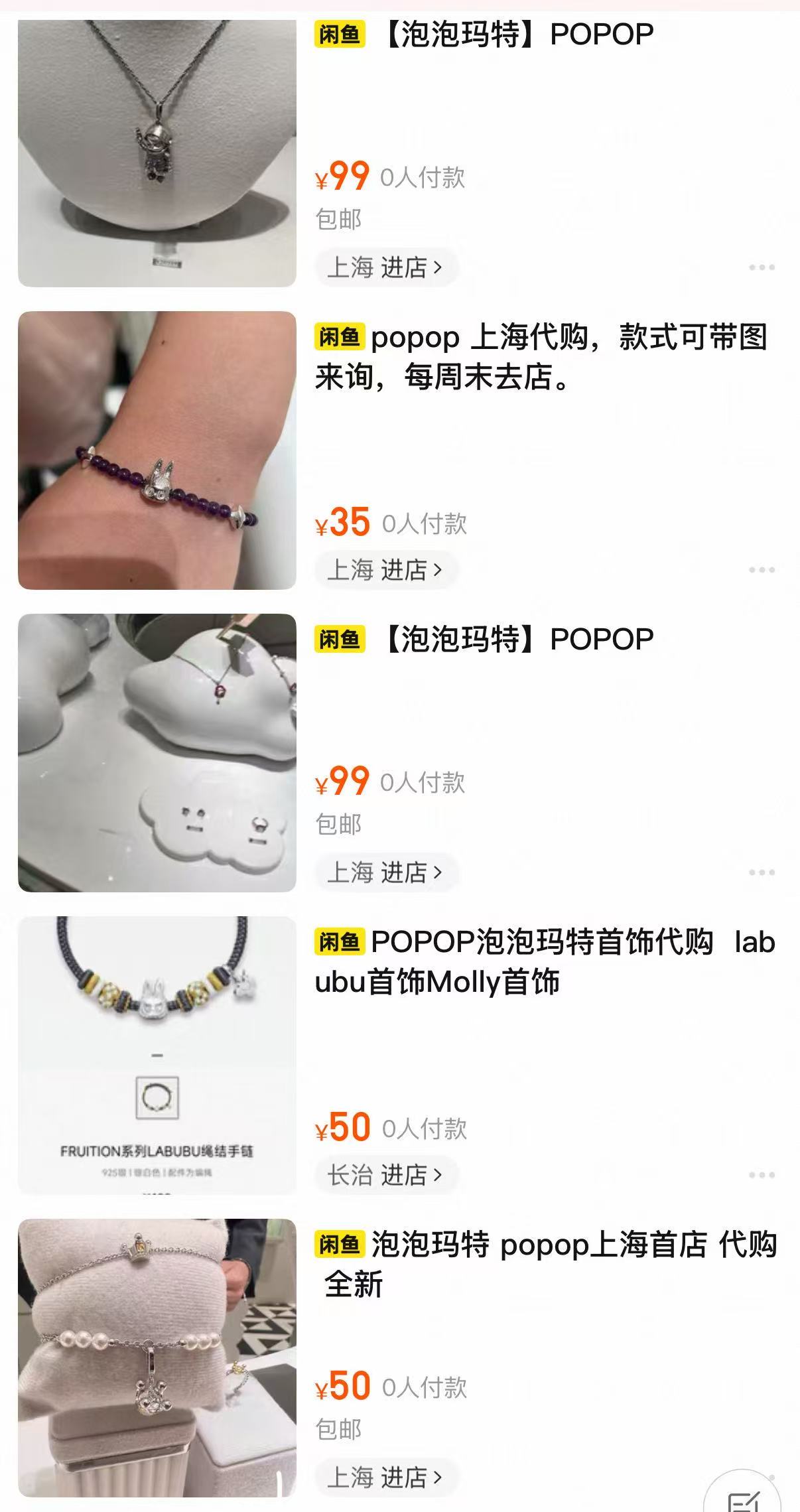 据悉,popop产品涵盖耳饰、戒指、项链等多个品类,其中,戒指的价位在399、499、699等,手链的价位在500至1000元之间,项链的价格区间在1000至2699元。不过,观察者网发现popop并未开通线上购买的方式,线上充斥着代购。