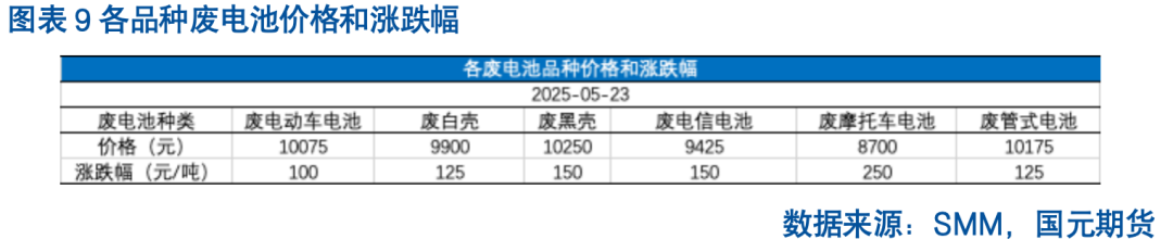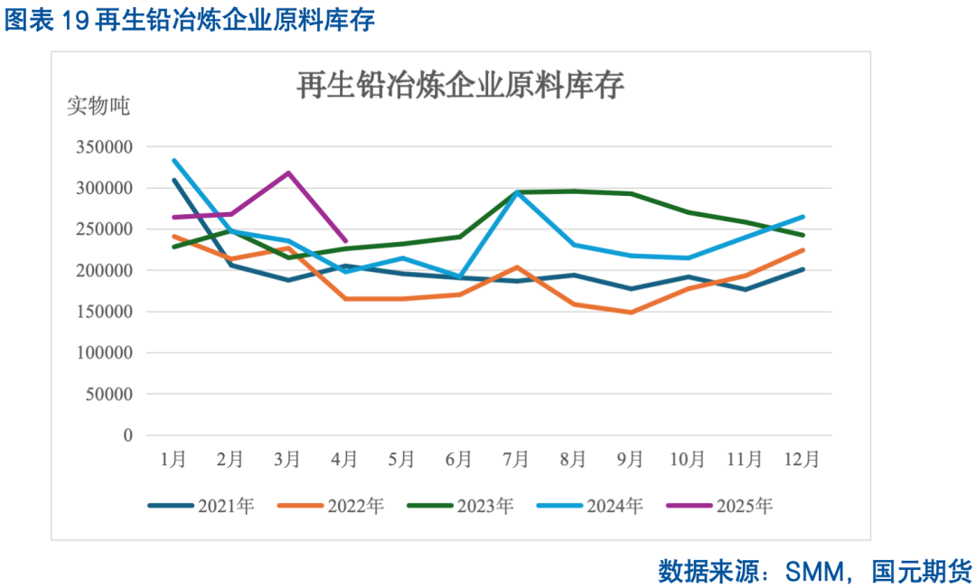 再生铅:再生铅炼厂原料供应阶段性恢复,6月产量或稳中小增。