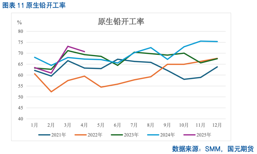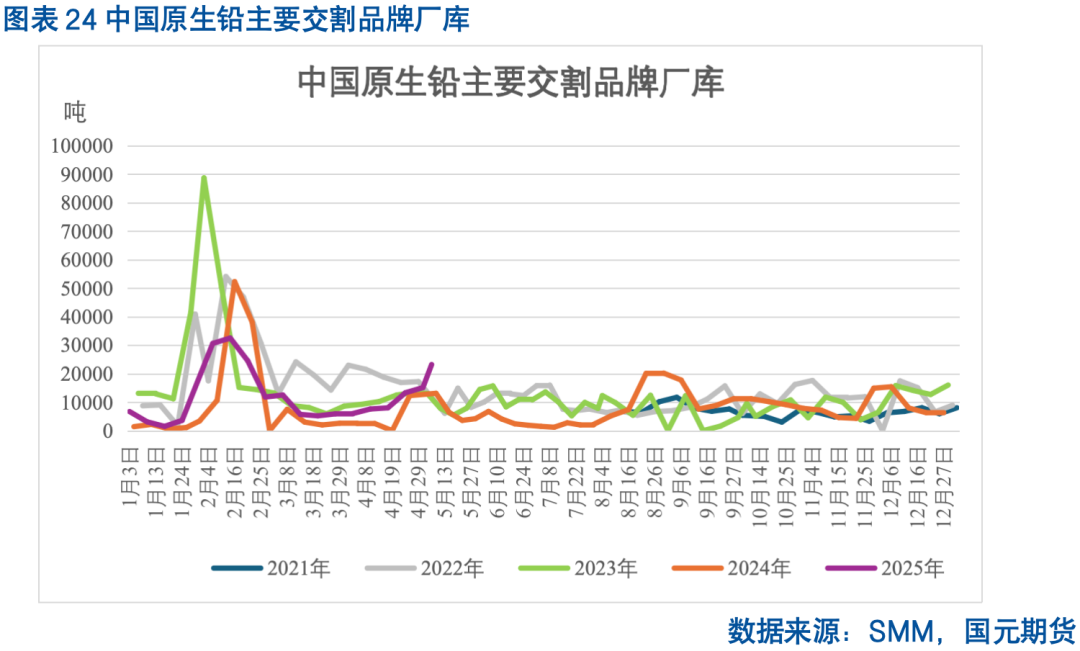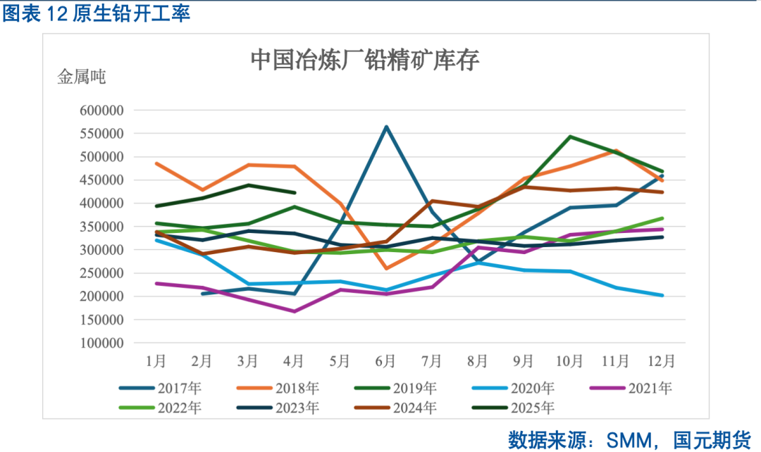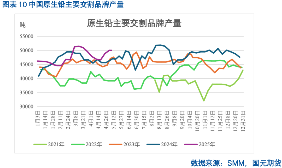 原生铅方面,矿山增产以及铅投料品位下滑综合影响下,预计原生铅产量持稳。