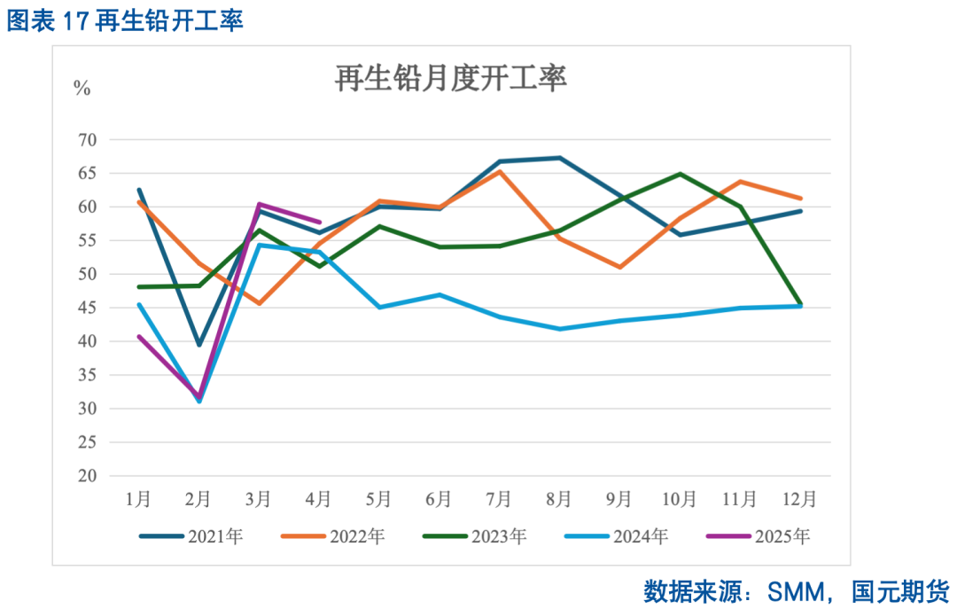 再生铅方面,再生铅炼厂原料供应阶段性恢复,6月产量或稳中小增。