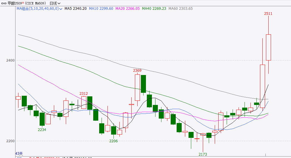 受伊朗装置停车影响,甲醇价格早盘大幅拉升,最大涨幅超5%,后震荡回落。主力合约收在2464元/吨,涨幅3.62%。