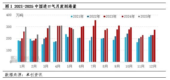 【LPG】5月到港量279.04万吨环比下降9.75%