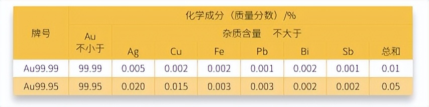 2、国产金锭的化学成分还应符合下表规定: