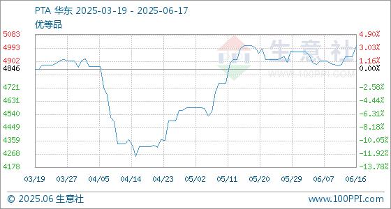 6月17日,生意社PTA基准价为5008.25元/吨,与本月初(4965.62元/吨)相比,上涨了0.86%。