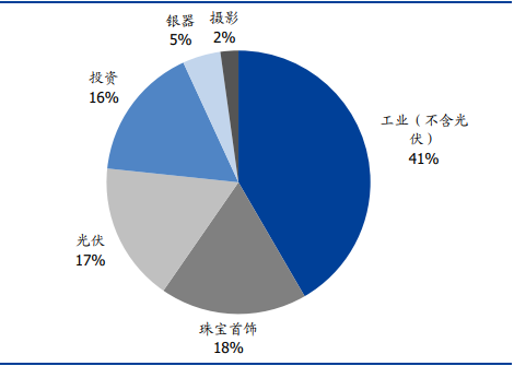 图表1:2024年全球白银下游需求结构(资料来源:世界白银协会、国盛证券研究所)