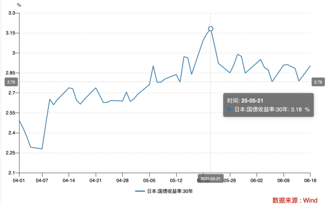 图为日本30年期国债收益率曲线,5月21日创下新高