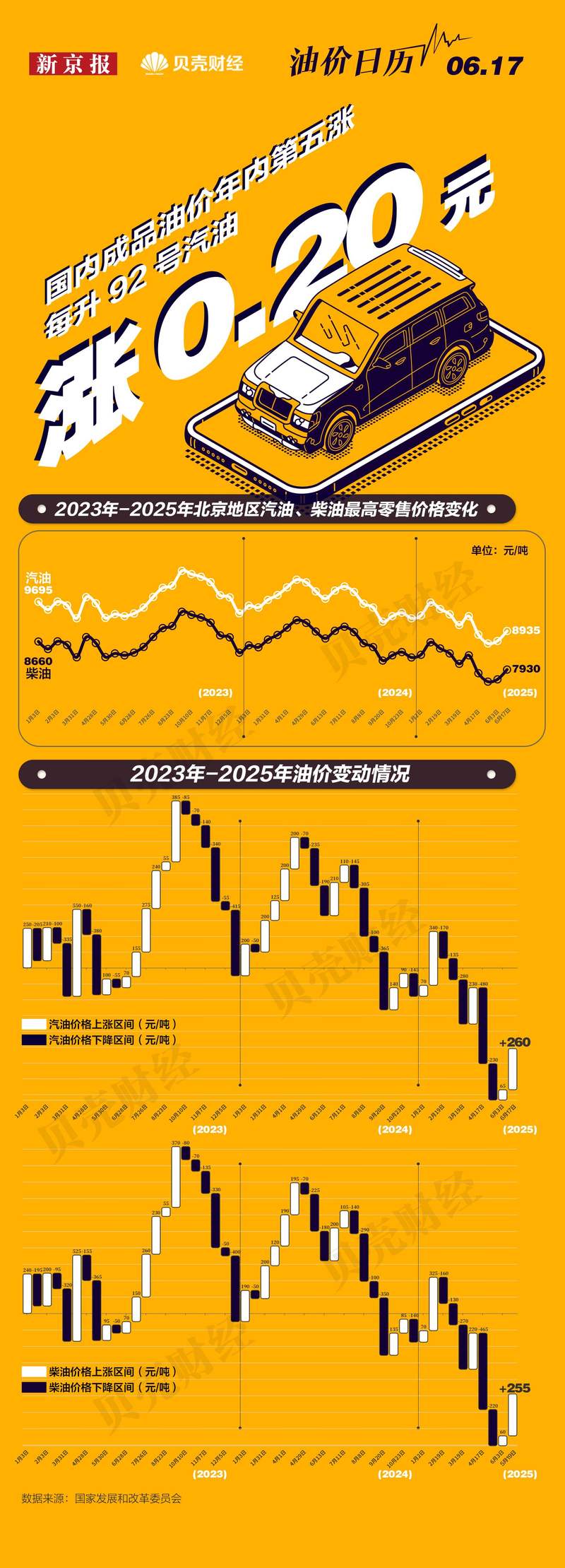 据国家发展改革委消息,6月17日24时起,国内成品油零售价格迎来年内第5次上调,汽、柴油价格(标准品)每吨分别上调260元、255元。折合成升价,每升92号汽油、95号汽油和0号柴油的升幅分别在0.20元、0.22元和0.22元。今年国内成品油零售价格已经历12轮调整周期,其中5次上调、2次搁浅、5次下调。