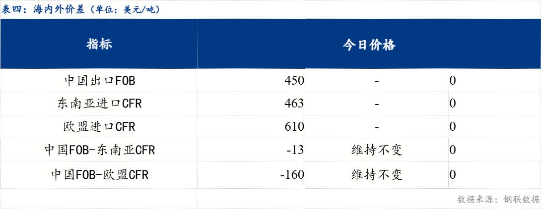 从区域价差来看,华东与东北价差140元/吨,较上一交易日维持不变;华东与华南价差20元/吨,较上一交易日维持不变;华南与华北价差60元/吨,较上一交易日正向缩小10元/吨。
