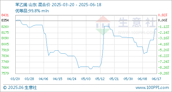 6月18日生意社苯乙烯基准价为8230.00元/吨