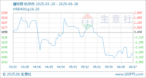 6月18日生意社螺纹钢基准价为3062.33元/吨