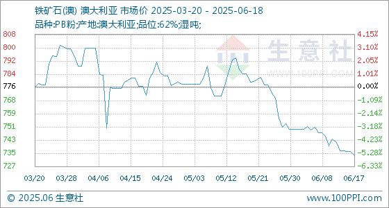 6月18日生意社铁矿石(澳)基准价为734.22元/吨
