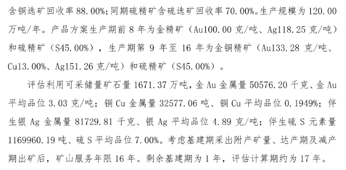由上可见,推断资源量占比超过50%。而资源量并不等于储量,二者的经济风险程度有显著差异。因此,在评估报告中,西部黄金将推断资源量可信度系数为0.6进行折算,评估利用可采储量为矿石量1671.37万吨,金金属量“折扣”之后变成50.58吨。