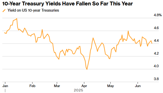 据一项指标显示,今年截至目前,美国国债市场已上涨了 2.3%。在此期间,10 年期美债的收益率因特朗普不断变化的贸易政策而波动不定,但截至 2025 年,其收益率仅下降了 16 个基点。