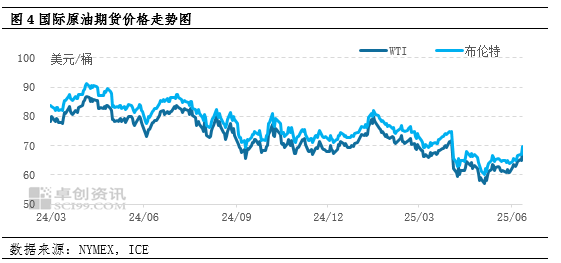 4月到5月初,在特朗普“对等关税”、OPEC转变“限产保价”策略等利空因素拖累下,国际油价继续下行。但5月中旬在关税风险降温,宏观市场氛围有所转好,同时随着传统旺季来临和地缘政治推动下,国际油价整体呈现偏强运行,对PP成本端和市场心态支撑力度增加。