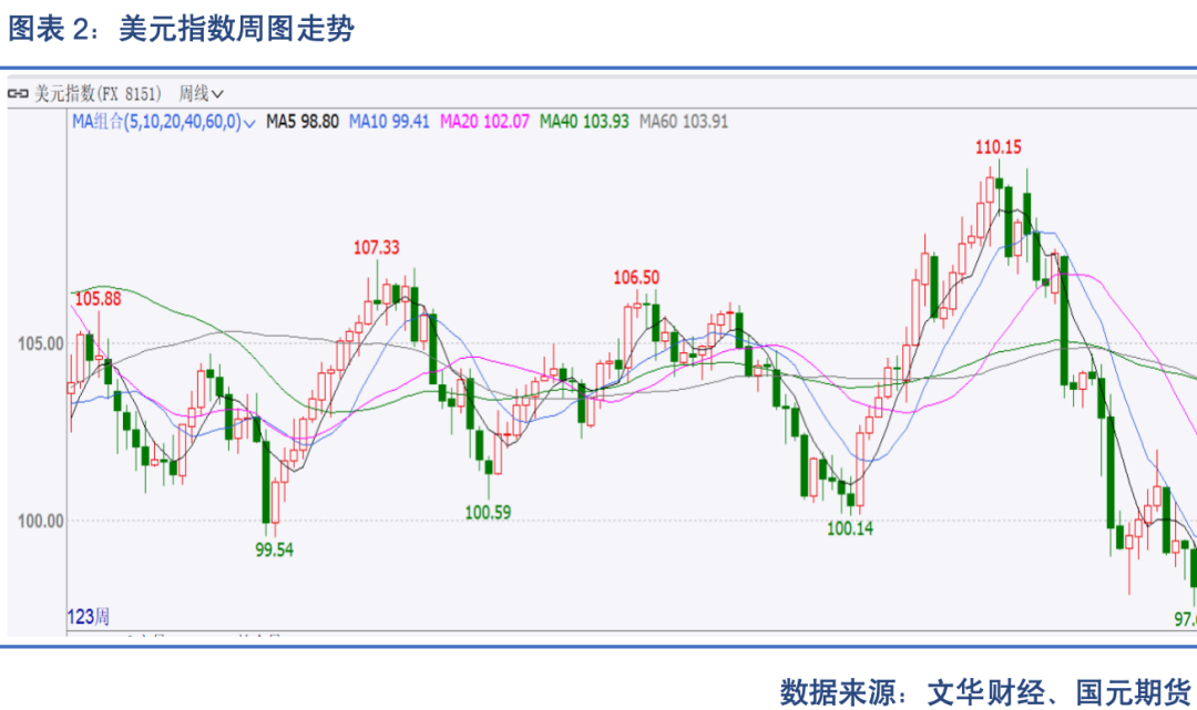 美元指数上周呈现“先抑后扬”的震荡格局, 周初因美国通胀数据疲软(CPI/PPI连续低于预期)强化美联储降息预期,美指一度跌至97.86的三年低位;周末中东地缘危机升级,以色列空袭伊朗目标引发避险买盘,消费者信心反弹提振,美指收复98关口,最终收于98.3附近。尽管短期避险情绪支撑反弹,但中长期受制于美国经济放缓和降息路径,技术面仍处震荡偏弱趋势,机构普遍看空未来走势。本周重点关注美联储官员讲话及中东局势进展。