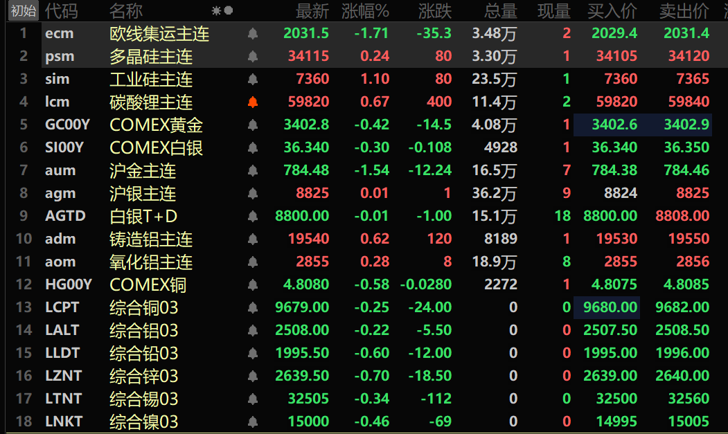 金属多飘绿沪镍跌近1%工业硅焦煤涨超1%沪金欧线集运跌幅居前【SMM午评】