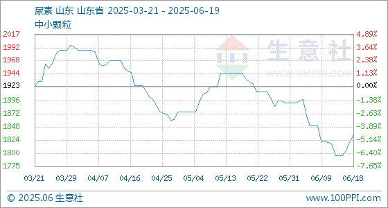6月19日,生意社尿素基准价为1834.00元/吨,与本月初(1892.00元/吨)相比,下降了3.07%。