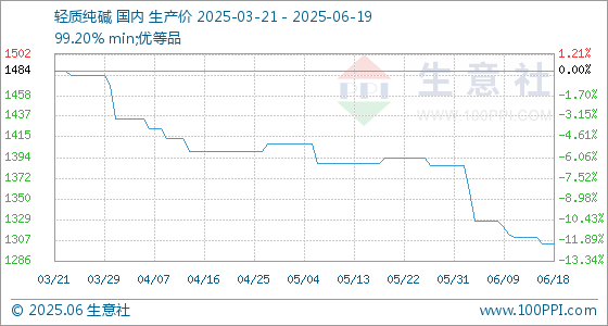 6月19日生意社轻质纯碱基准价为1304.00元/吨