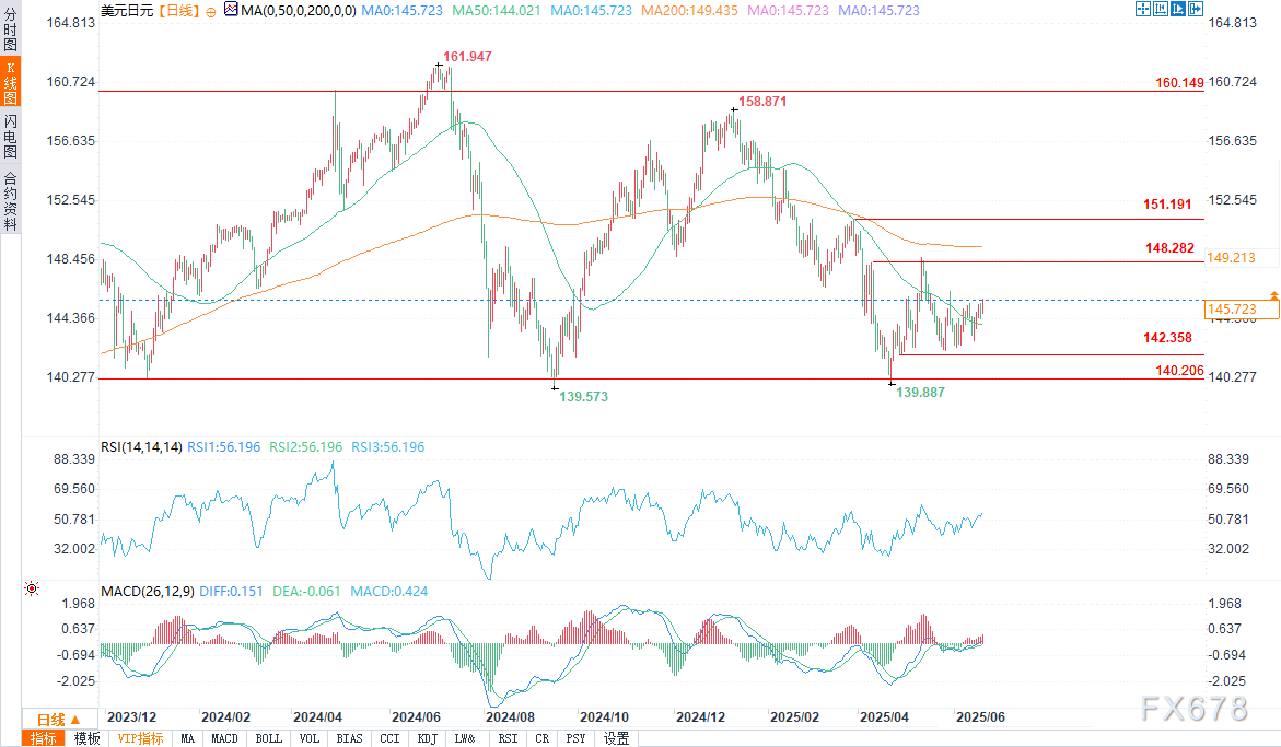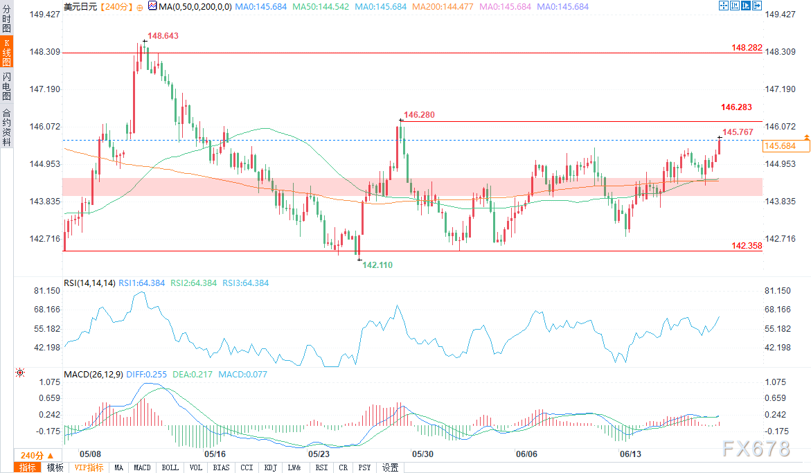 汇通财经APP讯——周四(6月19日)欧盘时段,美元/日元盘中交投于145.636/49,涨幅0.36%。地缘政治担忧推动市场,在当前的避险情景下,美元比日元表现更好,美元/日元日内保持走高趋势。
