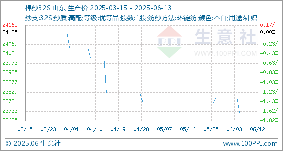 6月13日生意社棉纱32S基准价为23725.00元/吨