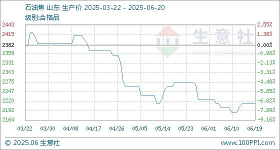 6月20日,生意社石油焦基准价为2212.50元/吨,与本月初(2225.00元/吨)相比,下降了0.56%。