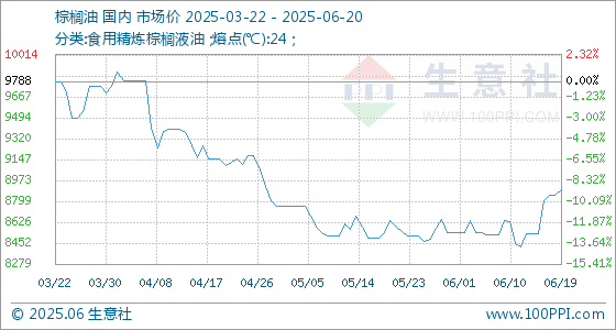 6月20日生意社棕榈油基准价为8896.00元/吨