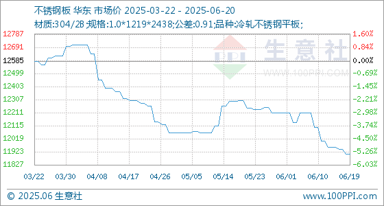 6月20日生意社不锈钢板基准价为11907.14元/吨
